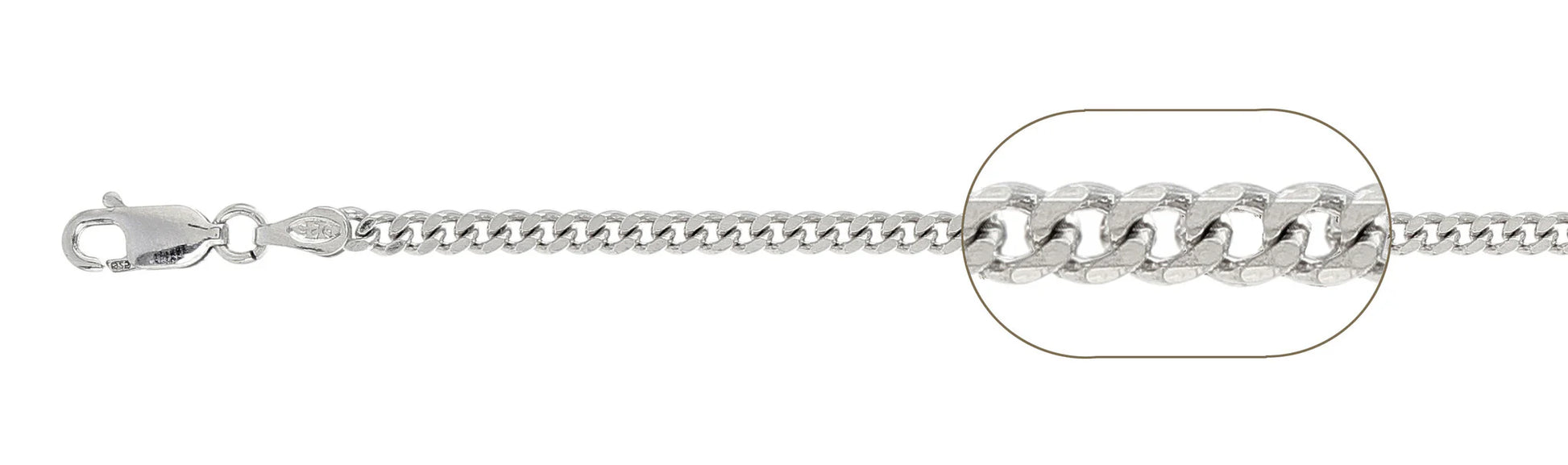 925 Sterling Silver Curb Chain 080 / 3mm, 16 inches - 30 inches