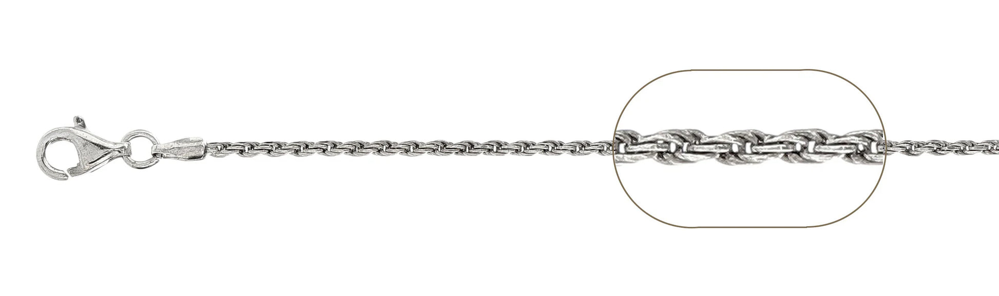 925 Sterling Silver Rope Chain 040 / 2mm, 16 inches - 30 inches