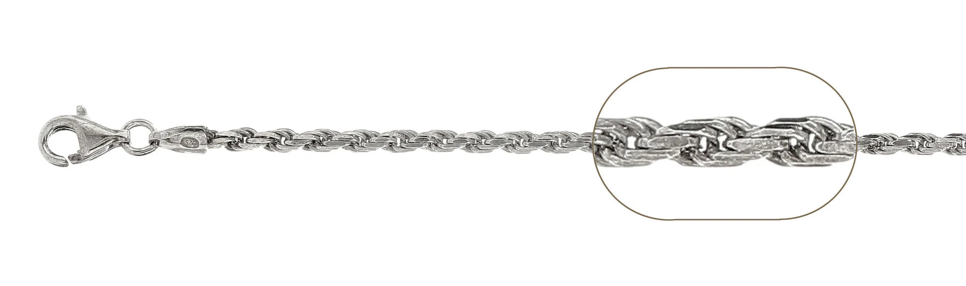 925 Sterling Silver Rope Chain 060 / 2.8mm, 16 inches - 30 inches