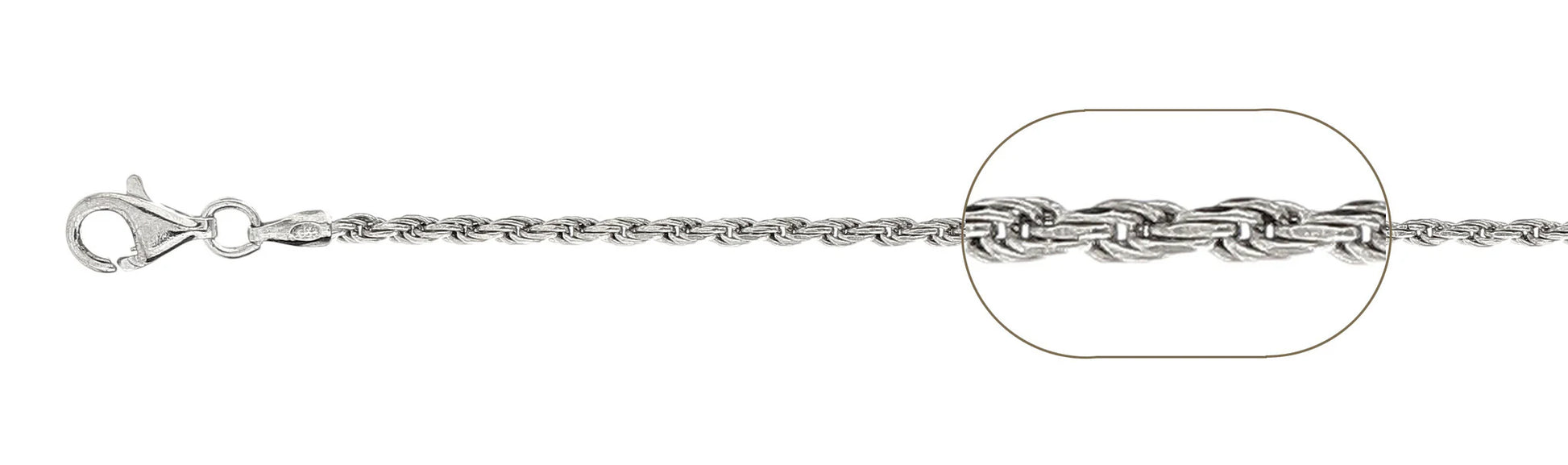 925 Sterling Silver Rope Chain 050 / 2.5mm, 16 inches - 30 inches